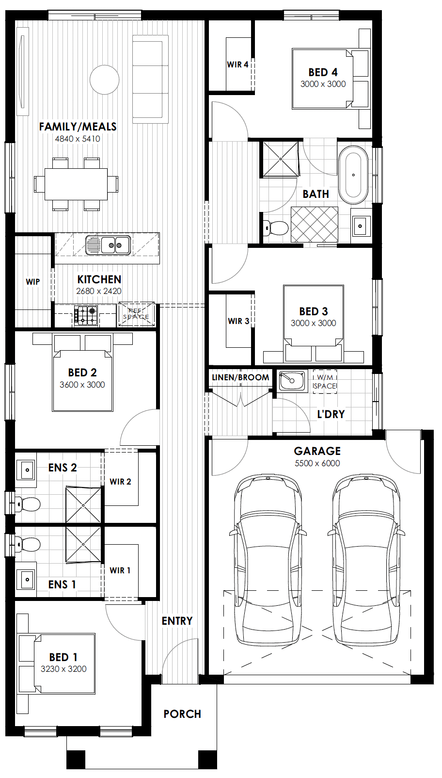 The Hawthorn 20 is a spacious four-bedroom family home designed for 12.5m lots, offering a smart, practical layout with no wasted space. The master suite sits privately at the front with a walk-in robe and ensuite, while bedrooms 2 and 3 form their own wing with an additional ensuite and bathroom—ideal for families needing flexibility.