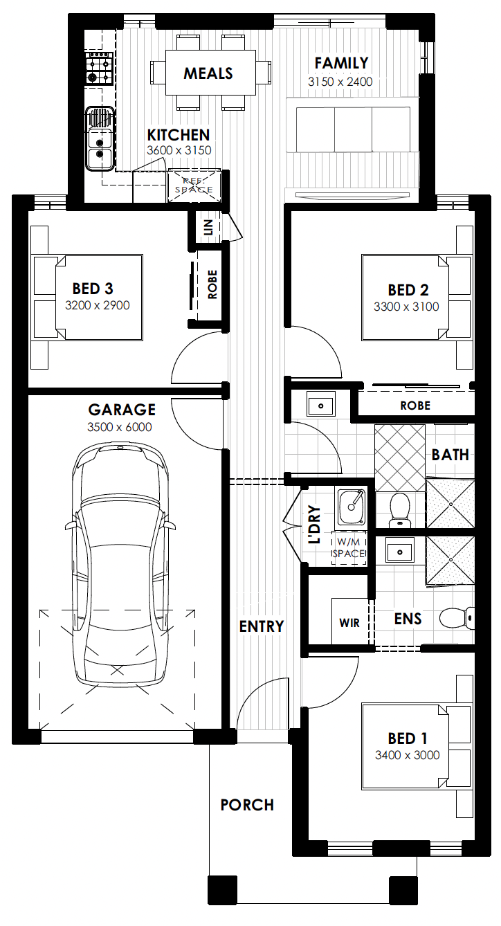 A single garage with internal access, full laundry with storage space, and a well-positioned entry complete the design. With its balanced layout, efficient footprint and thoughtful zoning, the Richmond 13 delivers a comfortable and modern lifestyle in a compact, highly functional home.